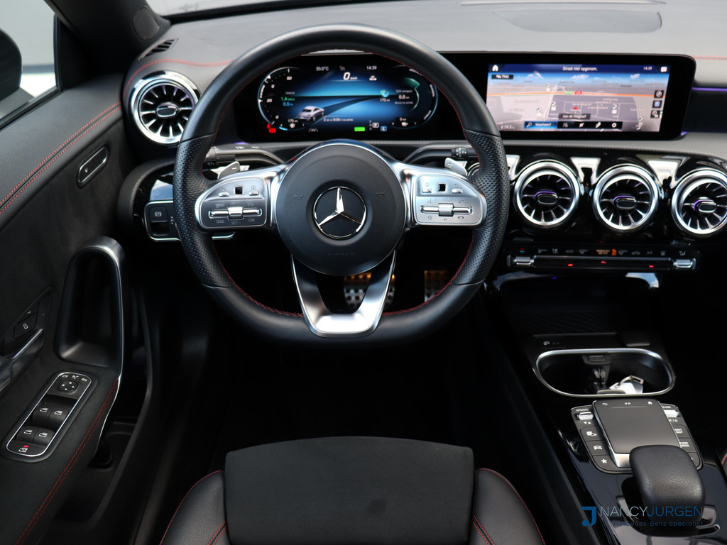 Techniek en design helemaal van nu. Kilometerstand van gisteren. Deze bijna-nieuwe Mercedes-Benz CLA-klasse heeft z'n nestveren afgeschud en is klaar om te vliegen. Met de kenmerkende AMG-styling toont deze Mercedes-Benz zich van zijn sportieve kant. Deze auto is bijna nieuw, ondanks dat hij uit 2022 komt; hij heeft slechts 25899 kilometer afgelegd. Zuinig, slim en milieuverantwoord! Deze hybride auto combineert een verbrandingsmotor en een elektromotor: voordelig rijden en gunstig in onderhoud. Voorin is het 's winters genieten met de verwarmbare voorstoelen voor zowel bestuurder als bijrijder. In het interieur domineren de sportstoelen, die er niet alleen stijlvol uitzien, maar die u ook optimaal ondersteunen tijdens de rit. De uitmonstering van deze auto wordt gecompleteerd door onder meer 18 inch lichtmetalen velgen, LED koplampen, AMG-styling, in delen neerklapbare achterbank, LED-achterlichten en verstelbare lendensteunen.
